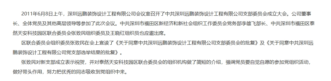 中共深圳远鹏装饰设计工程有限公司支部委员会成立
